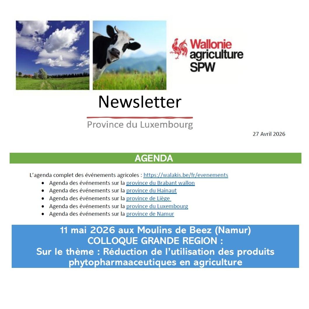 Le fichier : walakis.be/system/files/2026-04/260427-07NewsletterSPWARNELuxembourg.pdf L\'actualité #Walakis : walakis.be/fr/actualites/agenda-du-spw-agriculture-en-province-de-luxembourg-du-27-avril-20