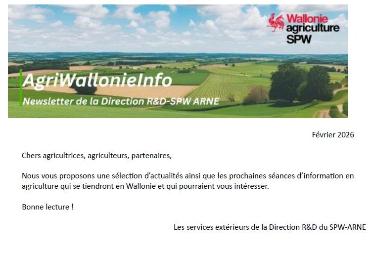 La newsletter de la Direction de la Recherche et du Développement du SPW-ARNE ! Le fichier pdf : walakis.be/system/files/2026-02/260218-01AgriWallonieInfoFévrier.pdf L\'actualité Walakis : walakis