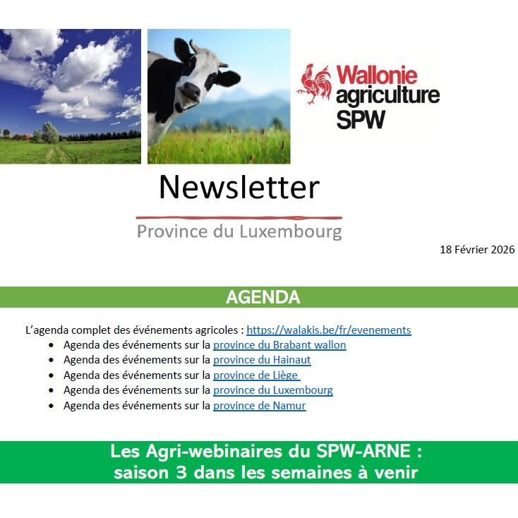 L'actualité Walakis : walakis.be/fr/actualites/newsletter-spw-agriculture-en-province-de-luxembourg-du-18-fevrier-2026